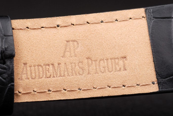 Bracelet en acier inoxydable: Heat gaufré Audemars Piguet crocodile noir bracelet en cuir avec Audemars Piguet gravé pli en acier inoxydable clasp