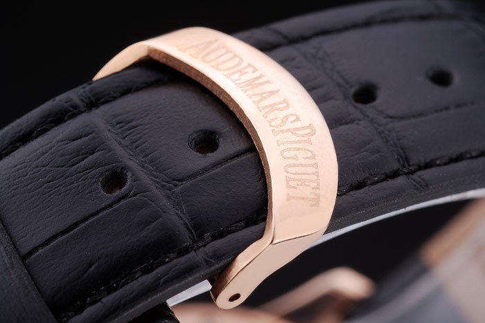 Bracelet en acier: Bracelet en cuir de crocodile avec la chaleur en relief Audemars Piguet nom et le logo et une Audemars Piguet inscrits plaqué 18k or rose flip-dessus le crochet clasp