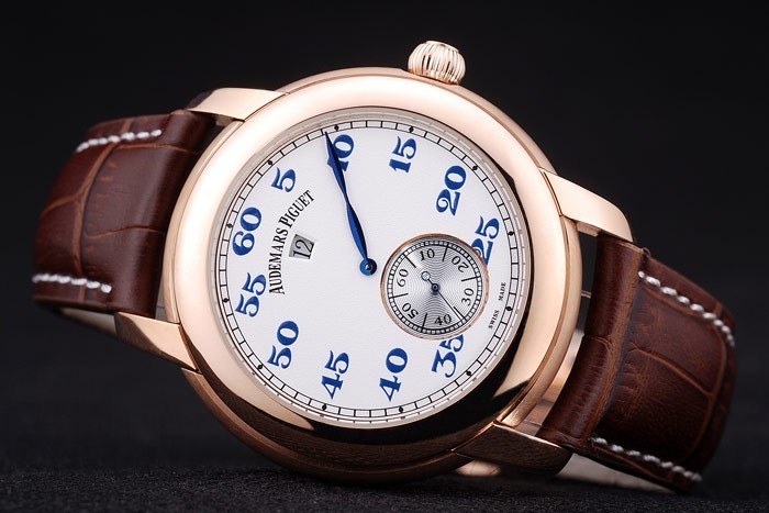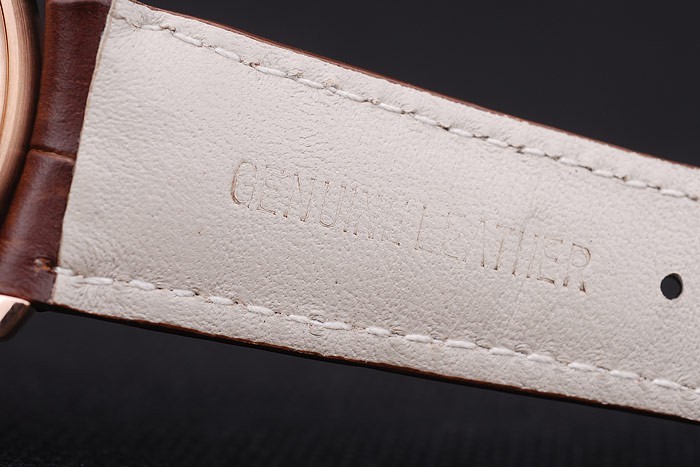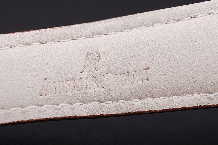 Bracelet en acier: Brown bracelet en cuir de crocodile de fil blanc couture et de la chaleur en relief Audemars Piguet nom et le logo et une Audemars Piguet inscrits plaqué 18k or rose flip-dessus le crochet clasp