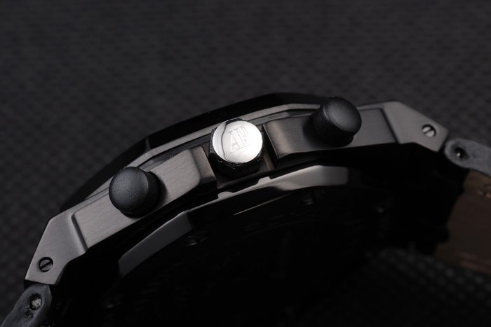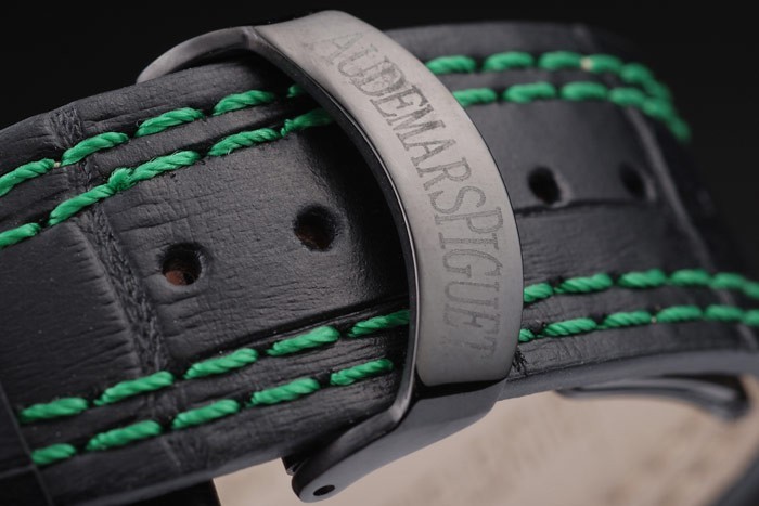 Bracelet en acier inoxydable: Heat gaufré Audemars Piguet crocodile noir bracelet en cuir avec double couture et vert Audemars Piguet gravé ions plaqué fois en clasp