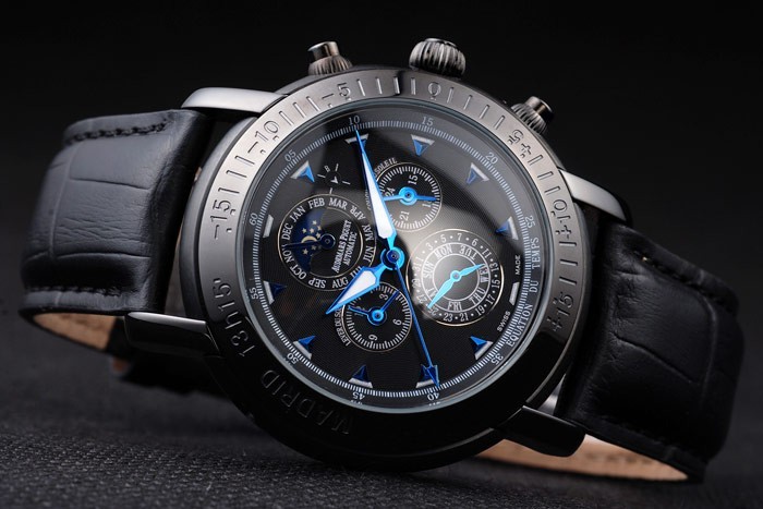 Bracelet en acier inoxydable : Heat gaufré Audemars Piguet crocodile noir bracelet en cuir avec Audemars Piguet gravé ions plaqué fois en clasp
