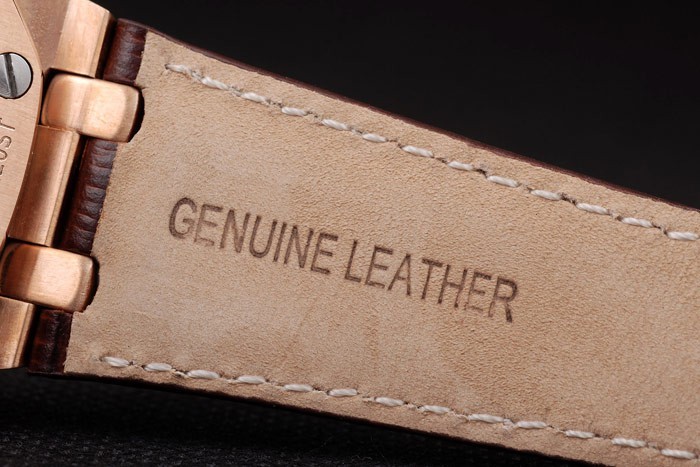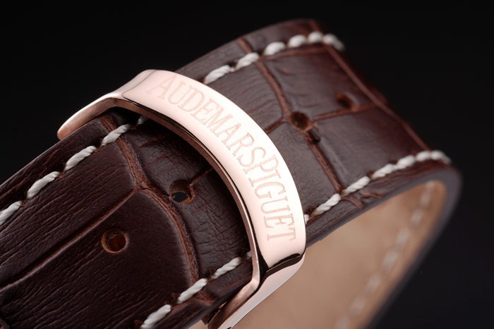 Bracelet: Heat gaufré Audemars Piguet bracelet en cuir brun crocodile avec Audemars Piguet gravé plaqué or rose fold-in clasp