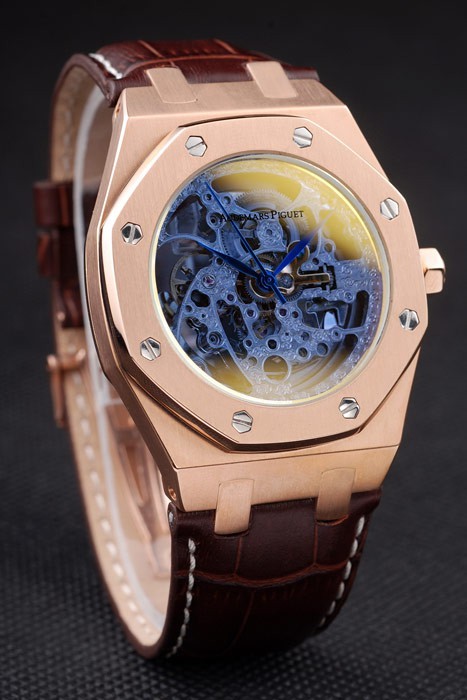 Retour Royal Oak gravé en or rose plaqué vissé en arrière avec le centre transparent révélant de mechanics