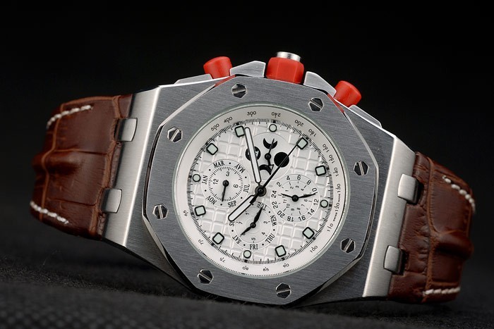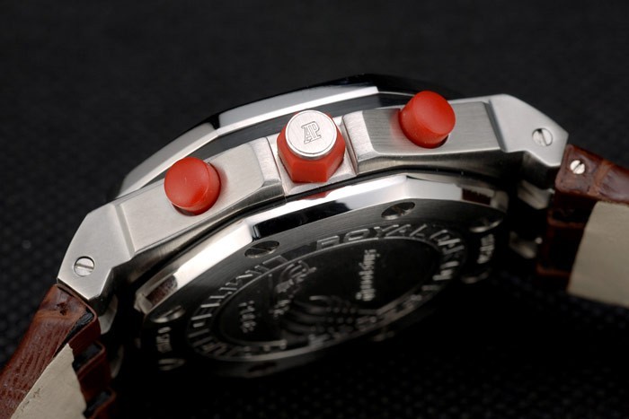 Crown: acier inoxydable Audemars Piguet logo gravé émail rouge couronne hexagonale avec deux petits rouges émail poussée bouton couronnes de chaque c té de it