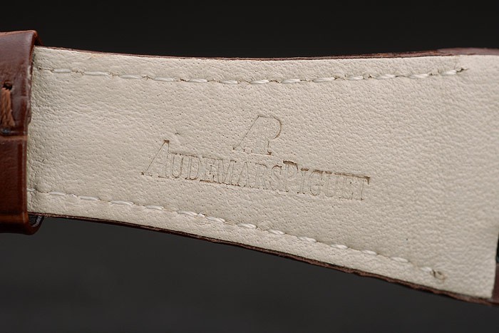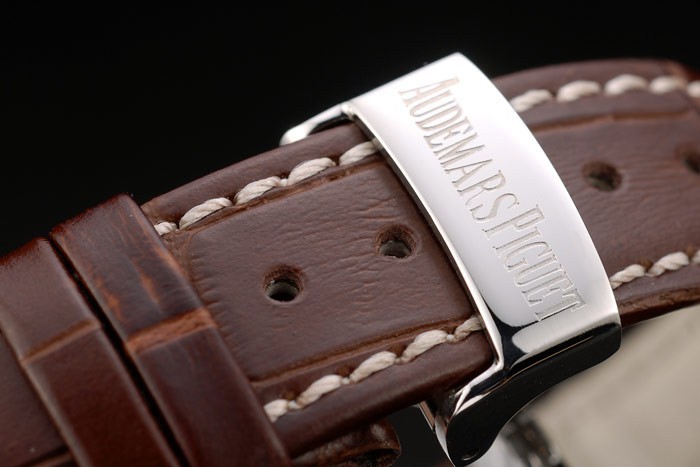 Bracelet en acier inoxydable: Audemars Piguet gaufré bracelet en cuir de crocodile brun chaleur avec Audemars Piguet gravé poli crochet en acier inoxydable clasp