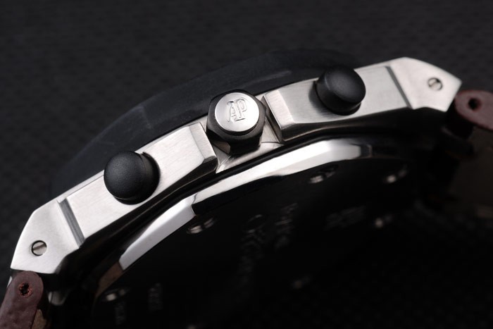 Bracelet en acier inoxydable: Heat gaufré Audemars Piguet bracelet en cuir brun crocodile avec double couture blanche et Audemars Piguet gravé inoxydable rabattable en acier clasp