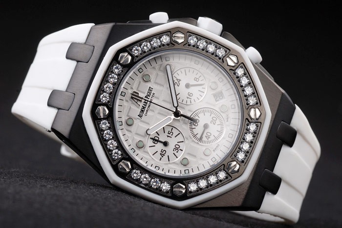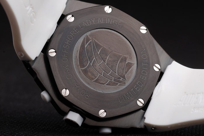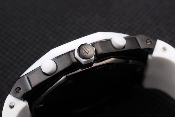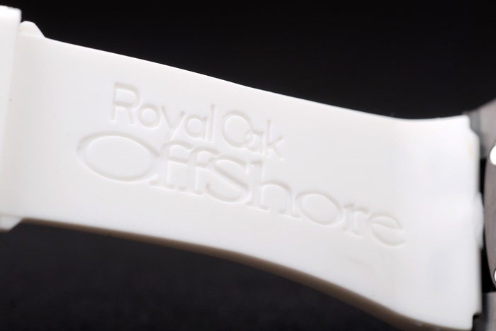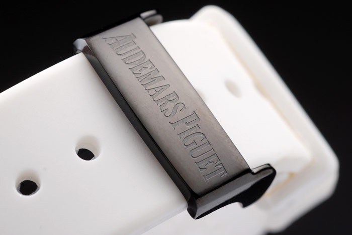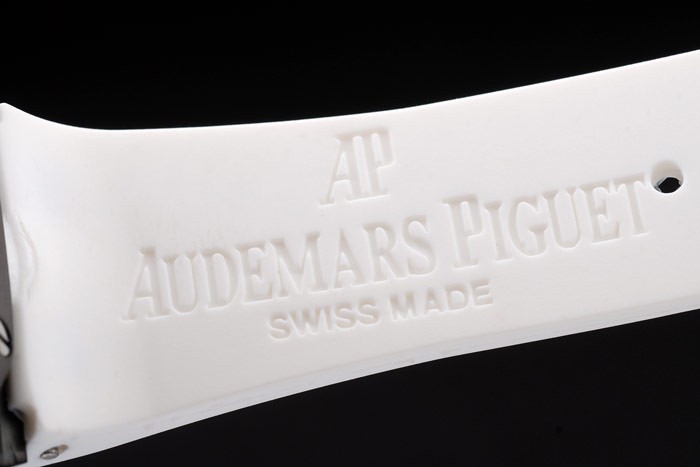 Bracelet en acier inoxydable: Audemars Piguet Royal Oak Offshore gaufré bracelet en caoutchouc blanc avec Audemars Piguet gravé ion-plaqué fois en clasp