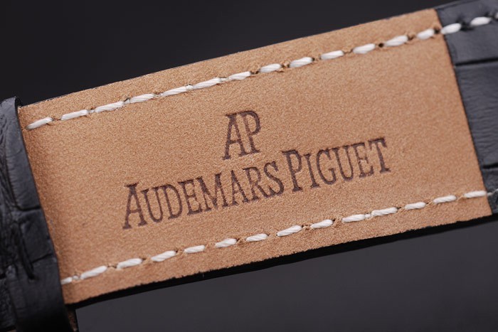 Bracelet en acier: Bracelet en cuir de crocodile blanc coutures de fil et de la chaleur en relief Audemars Piguet nom et le logo et une Audemars Piguet inscrits plaqué or rose flip-dessus le crochet clasp