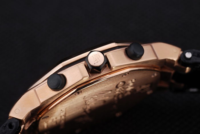 Crown: plaqué or rose Audemars Piguet logo gravé couronne cutwork ion-plaqué avec deux petites couronnes d’ions plaqué de chaque c té de it