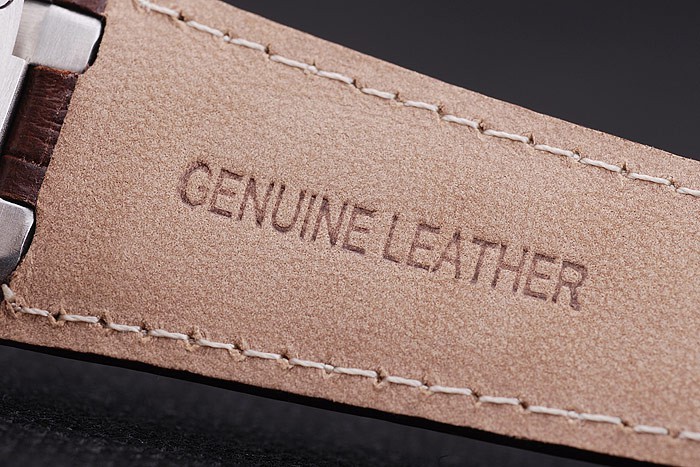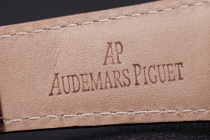 Bracelet: Brown bracelet en cuir de crocodile blanc coutures de fil et de la chaleur en relief nom Audemars Piguet et le logo et une Audemars Piguet inscrit en acier inoxydable flip-dessus le crochet clasp