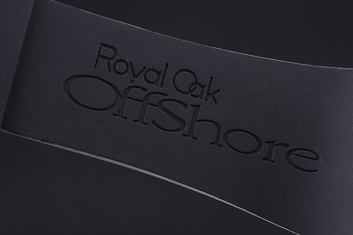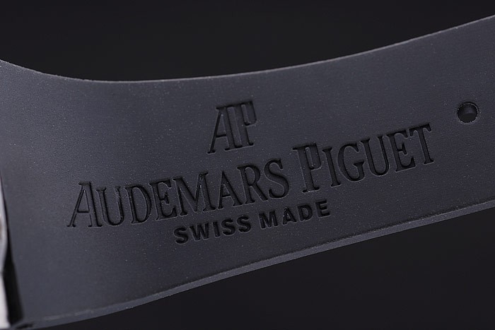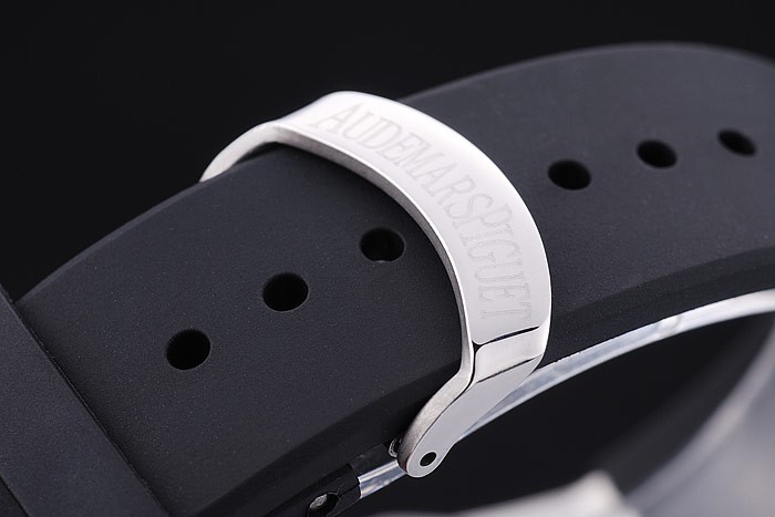 Bracelet: bracelet en caoutchouc noir avec la chaleur en relief timbre Audemars Piguet Royal Oak Offshore et une Audemars Piguet inscrit inoxydable acier flip-dessus le crochet clasp