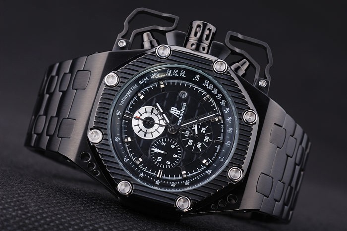 Crown: Audemars Piguet logo gravé couronne d’ions plaqué enfermé avec deux petits bouton-poussoir protégé couronnes de chaque c té de it