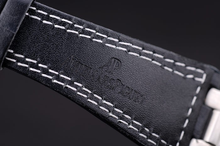 Bracelet en acier inoxydable: Heat gaufré Audemars Piguet Swiss Made logo et bracelet en cuir noir avec double fil de couture blanche et Audemars Piguet gravé en acier inoxydable crochet-boucle clasp