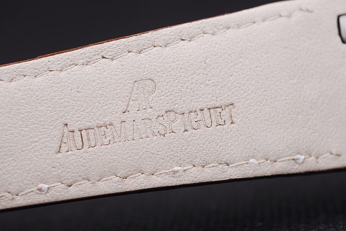 Bracelet: Brown bracelet en cuir de crocodile blanc coutures de fil et de la chaleur en relief nom Audemars Piguet et le logo et une Audemars Piguet inscrits en acier inoxydable flip-dessus le crochet clasp