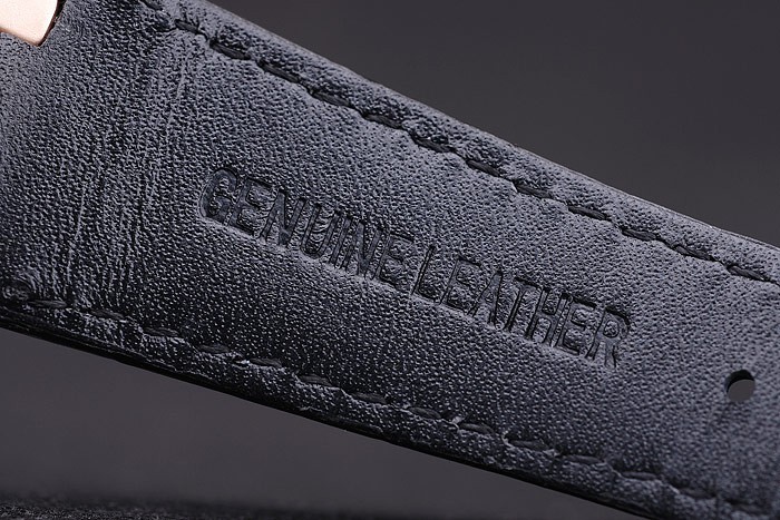 Bracelet en acier: Bracelet en cuir de crocodile avec fil blanc couture et chaleur en relief le nom et le logo Audemars Piguet et une Audemars Piguet inscrits plaqué or rose flip-dessus le crochet clasp