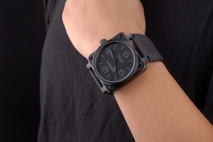 Retour: Ion-plaqué acier inoxydable vissé en arrière avec Bell&Ross inscriptions