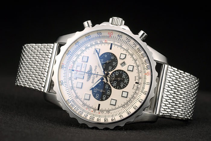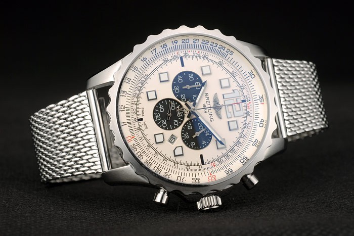 Crown: couronne poli cutwork en acier inoxydable avec Breitling logo et deux rondes de petites couronnes à bouton-poussoir de chaque c té de it