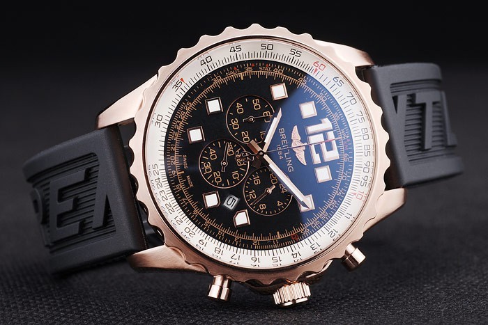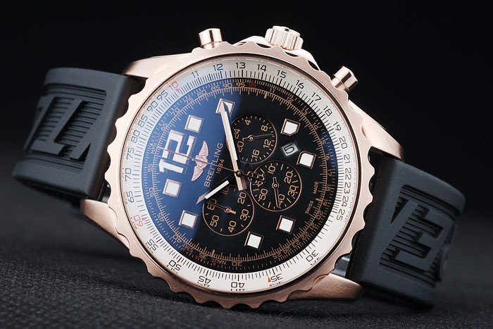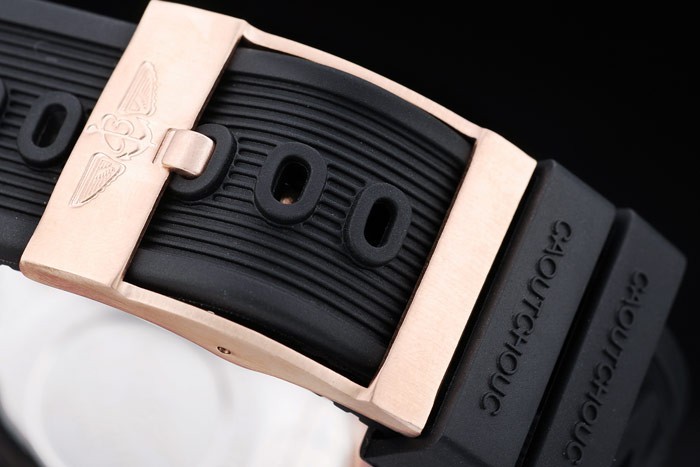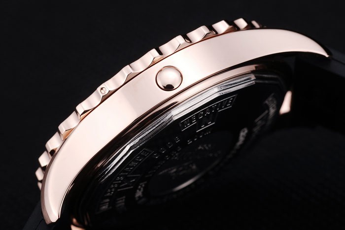 Case bracelet en caoutchouc noir avec Breitling logo gravé rose plaqué or crochet boucle clasp