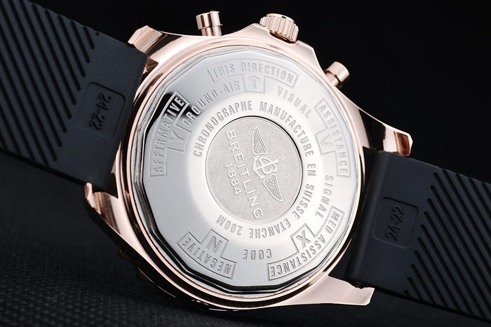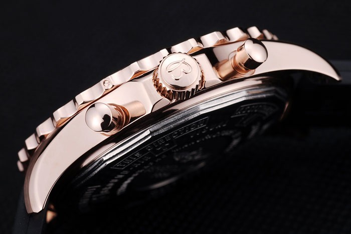 Crown: 18k or rose plaqué couronne cutwork avec Breitling logo et deux petits boutons-poussoirs couronnes en acier inoxydable de chaque c té de it