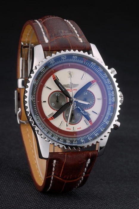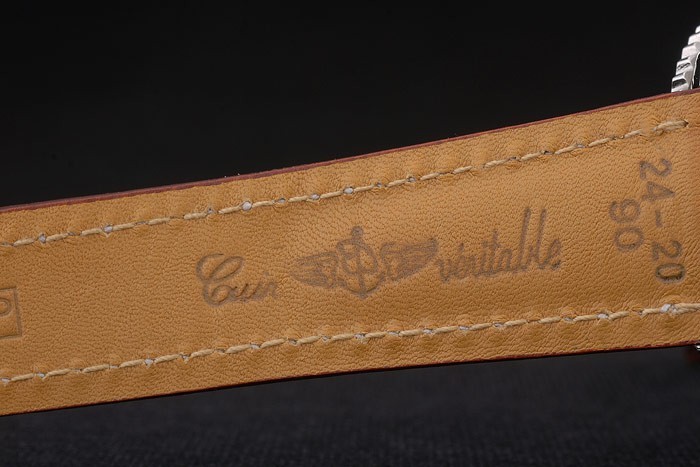 Bracelet en acier inoxydable: Breitling gaufré bracelet en cuir de crocodile brun chaleur avec couture blanche de fil et logo gravé poli pli en acier inoxydable clasp