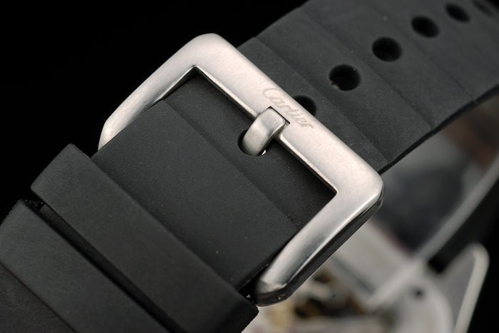Bracelet en acier inoxydable brossé: bracelet en caoutchouc noir avec Cartier inscrits en acier inoxydable brossé crochet boucle clasp