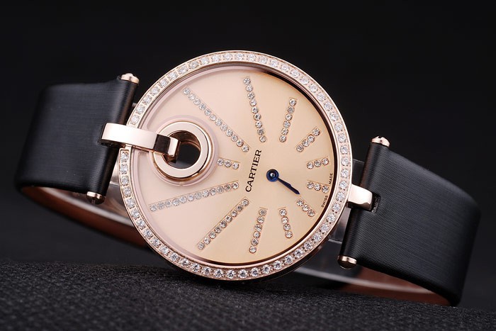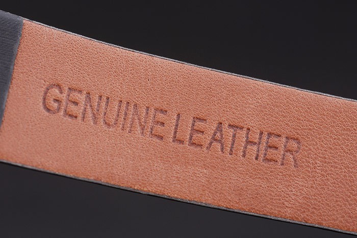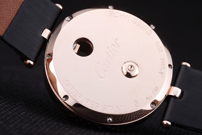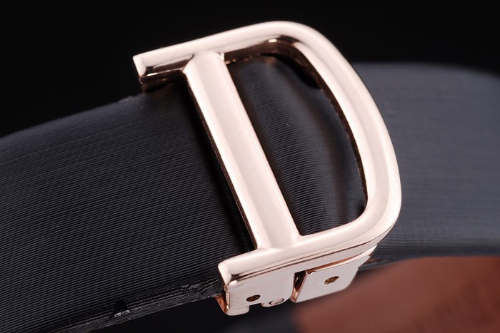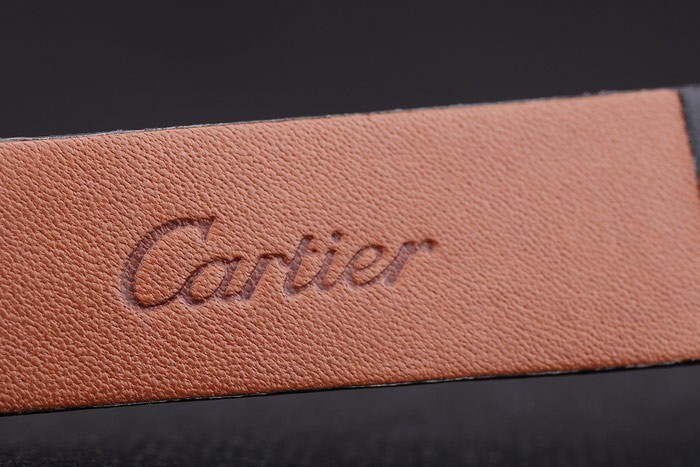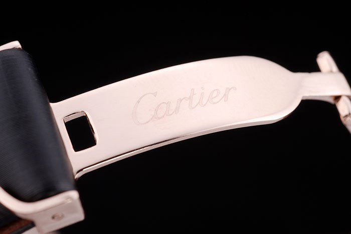 Bracelet en acier inoxydable: Heat gaufré Cartier noir texturé bracelet en cuir avec Cartier inscrit or rose dépliante en flip clasp