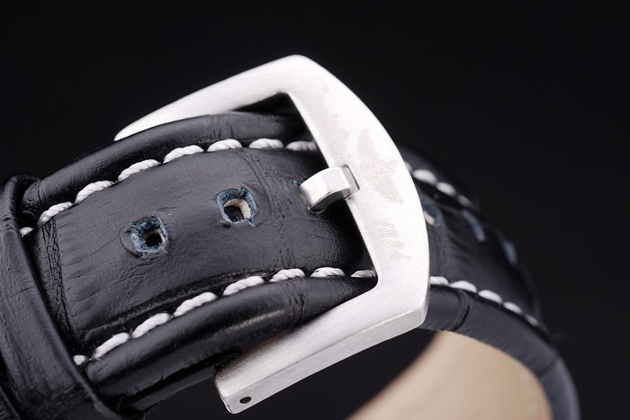 Bracelet en acier: Breitling 1884 et gaufré bracelet en cuir noir logo de chaleur avec coutures blanches et acier inoxydable crochet boucle clasp