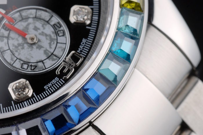 Bezel: cristal multicolore incrusté poli inox bezel