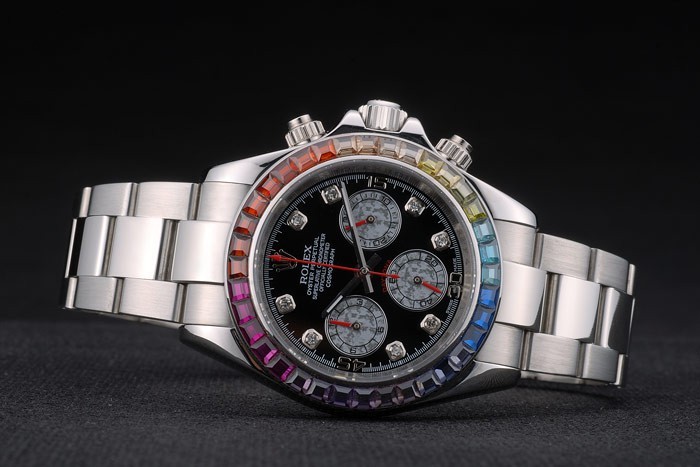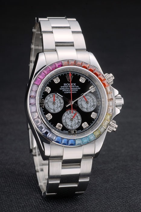 Crown: couronne cutwork en acier inoxydable poli avec Rolex logo et une couronne de bouton-poussoir de chaque c té de it