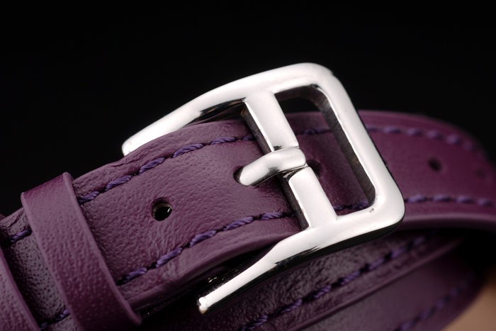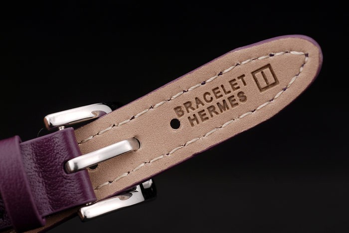 Bracelet en acier inoxydable: Allongée bracelet en cuir violet avec empreinte en relief de chaleur Bracelet Hermes et Hermes gravé en acier inoxydable poli crochet boucle déployante