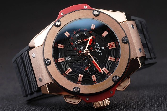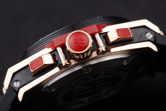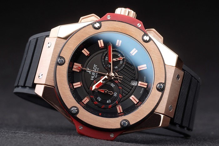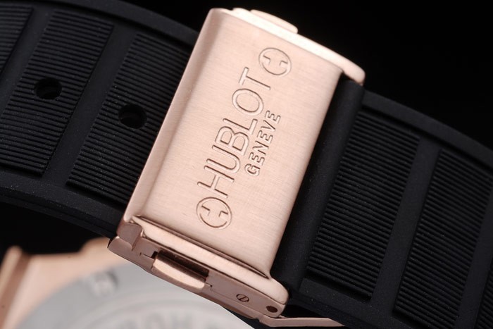Bracelet rouge: Texture bande de caoutchouc noir avec or rose bouton-poussoir crochet fermoir et Hublot engravings