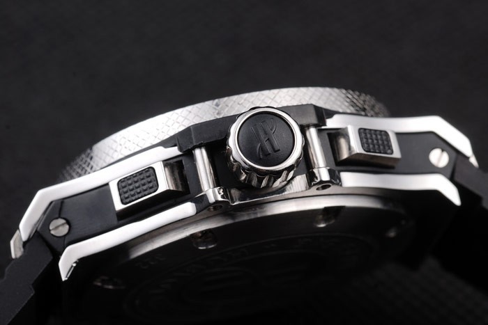 Bracelet en acier inoxydable: Texture bande de caoutchouc noir avec l’acier inoxydable bouton-poussoir crochet fermoir et Hublot inscriptions
