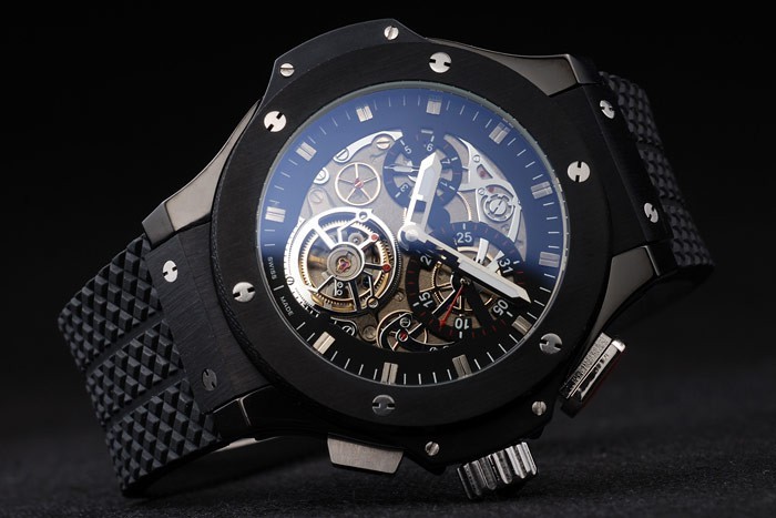 Bracelet: Texture bande de caoutchouc noir avec ions plaqué bouton-poussoir crochet fermoir et Hublot engravings