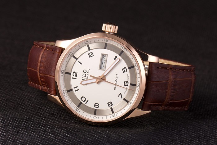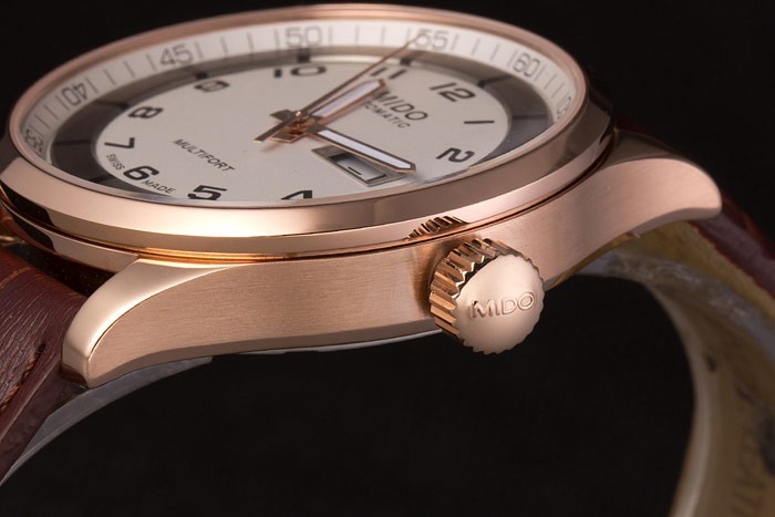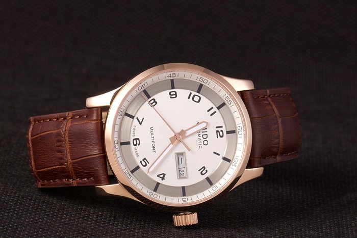 Mido Multifort Brown Croco bracelet en cuir blanc-cadran argenté 80300