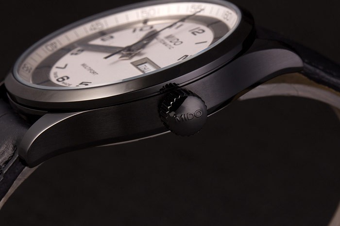 Mido Multifort Noir Croco bracelet en cuir blanc-cadran argenté 80297