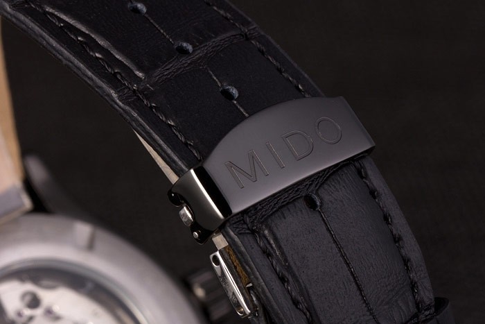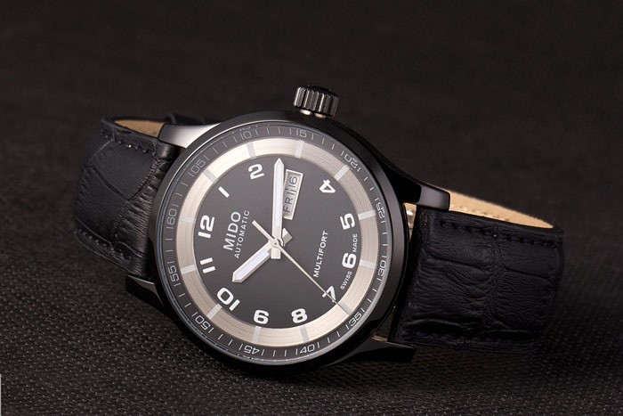 Mido Multifort Noir Croco bracelet en cuir noir Cadran Argent 80296