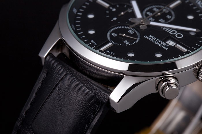 Mido Multifort Noir Croco bracelet en cuir noir rayé Dial 80288