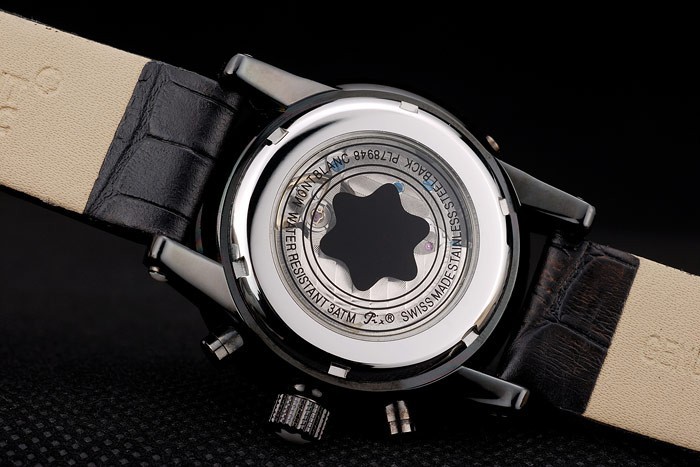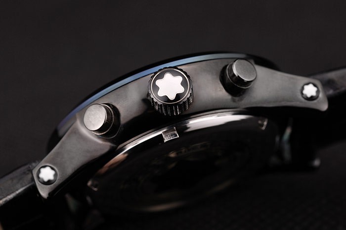Crown: couronne cutwork ion-plaqué avec MontBlanc logo et deux boutons-poussoirs couronnes d’ions plaqué de part et d’autre de it