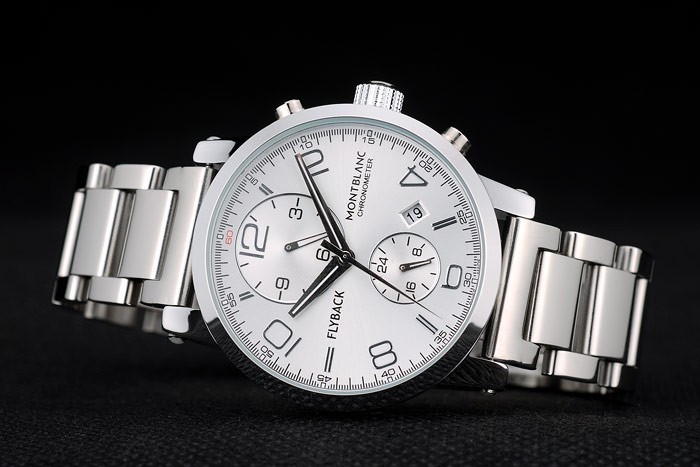 Crown: couronne cutwork en acier inoxydable poli avec MontBlanc logo et deux poli inoxydable poussoirs en acier bouton couronnes de chaque c té de it