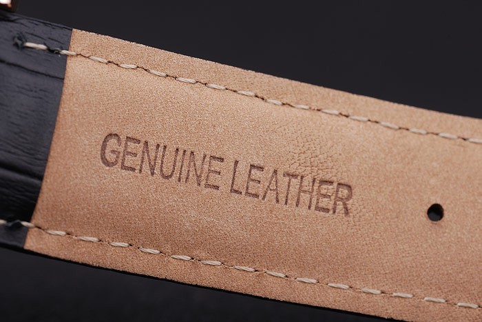 Bracelet en acier inoxydable: Heat gaufré MontBlanc crocodile noir bracelet en cuir avec MontBlanc nom et logo gravé or rose flip-dessus le crochet clasp