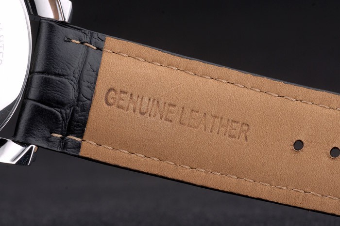 Bracelet en acier inoxydable: Heat gaufré MontBlanc crocodile noir bracelet en cuir avec le nom et le logo MontBlanc gravé poli acier inoxydable flip-dessus le crochet clasp