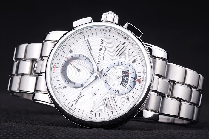 Crown: couronne cutwork en acier inoxydable poli avec MontBlanc logo et deux couronnes à bouton-poussoir rectangulaires de chaque c té de it