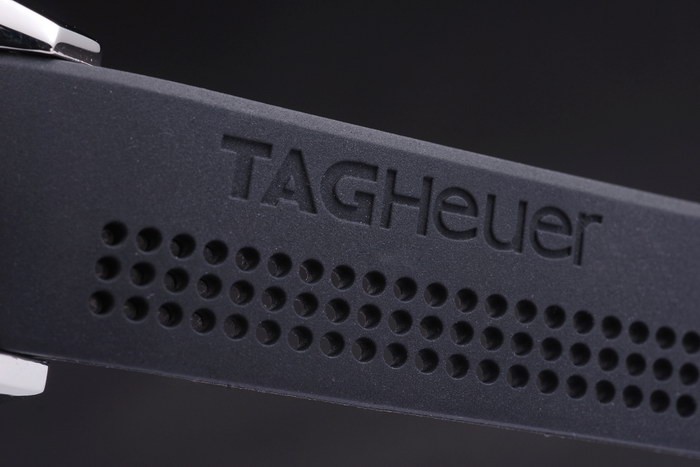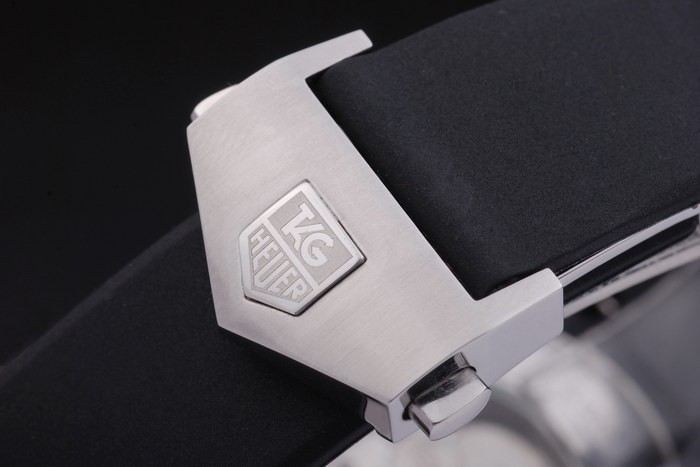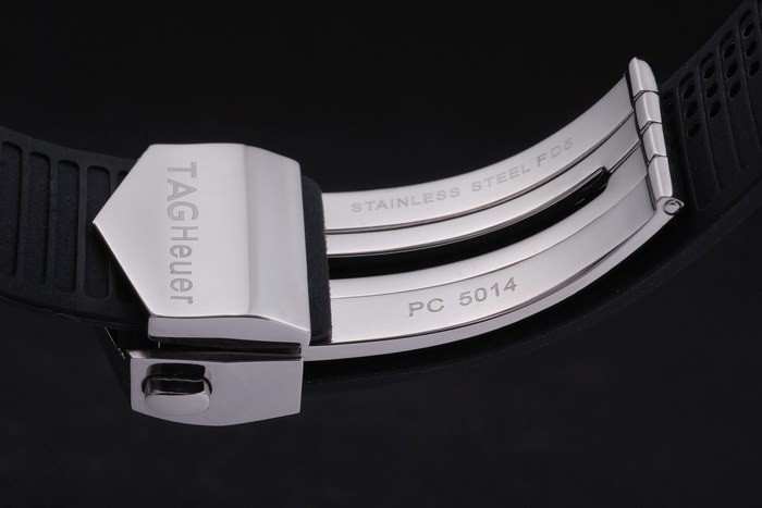 Bracelet en acier inoxydable brossé: Noir bracelet en caoutchouc avec marquage Tag Heuer et brossé déploiement en acier inoxydable clasp