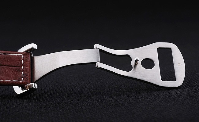 Bracelet en acier inoxydable: Brown bracelet en cuir de crocodile avec coutures blanches et Omega logo gravé en acier inoxydable crochet-boucle clasp