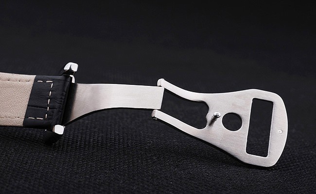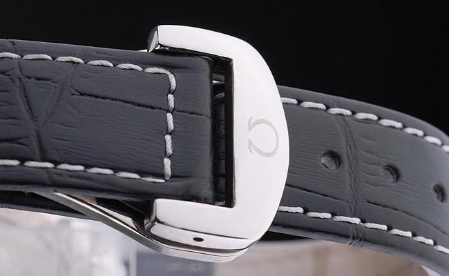 Bracelet en acier inoxydable: Bracelet en cuir de crocodile avec coutures blanches et Omega logo gravé en acier inoxydable crochet boucle clasp