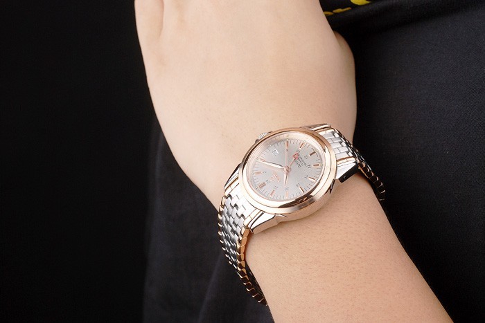 Bracelet en acier inoxydable: plaqué or jaune et brossé bracelet à maillons en acier inoxydable avec Omega logo gravé caché clasp