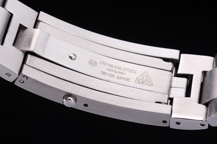 Bracelet: brossé lien bracelet en acier inoxydable avec Omega inscrit rabattable dans le déploiement clasp