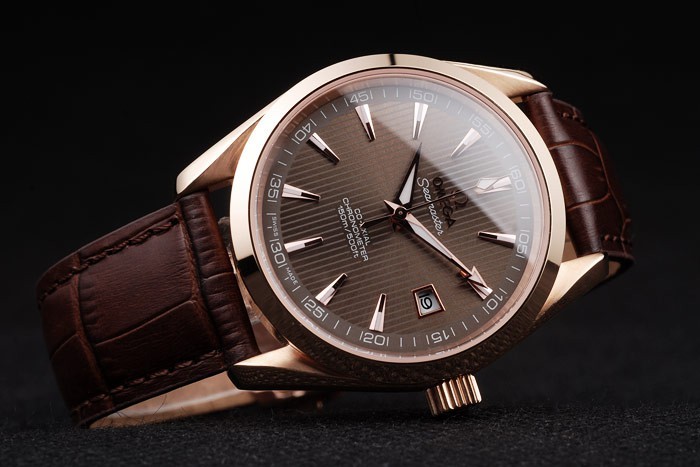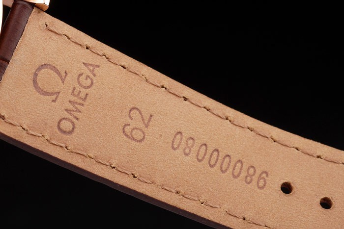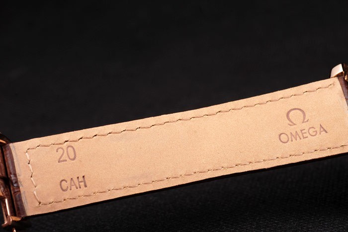 Bracelet: Brown bracelet en cuir de crocodile avec la chaleur en relief Omega timbre et Omega inscrit 18k rose-or fold-in clasp