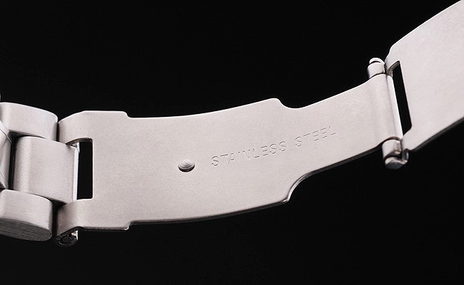 Bracelet en acier inoxydable: brossé et poli lien bracelet en acier inoxydable avec des gravures Omega bouton-poussoir de presse déploiement clasp