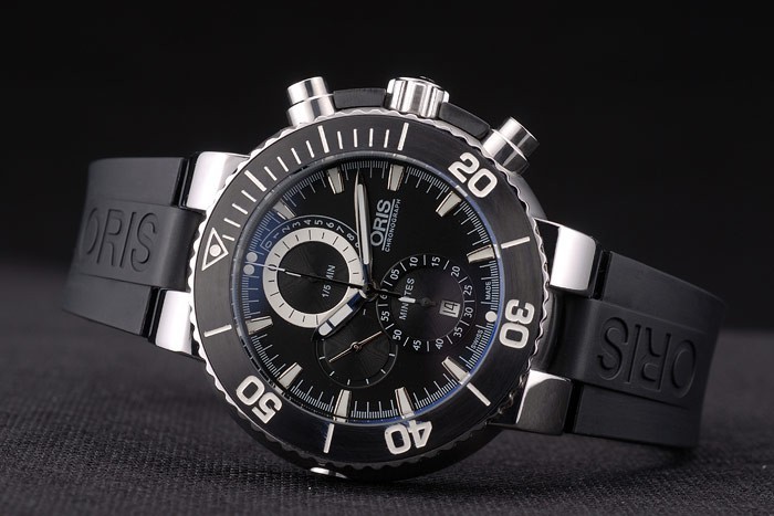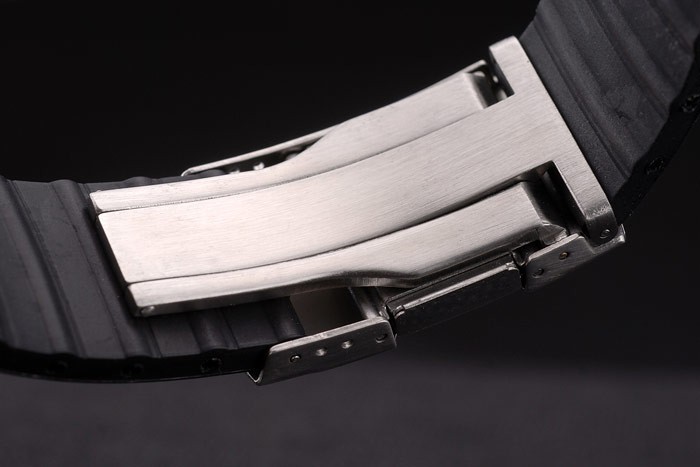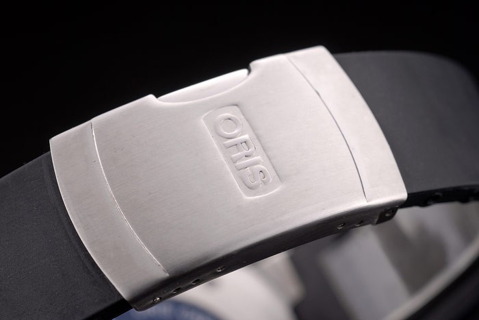 Case japonais: déploiement en acier inoxydable Oris gaufré bracelet en caoutchouc noir de chaleur avec Oris gravé au brossé: brossé case